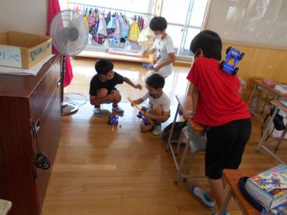 今日のリフレッシュタイム(休み時間)の様子です。剣玉をしたり、理科の実験で使ったマイカーで遊んだり、思い思いの過ごし方をしています。