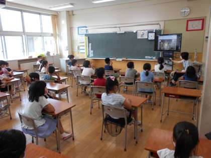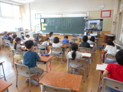 今日は、生徒指導の先生から夏休みの過ごし方についての話を聞きました。「交通事故に気を付けること」「遊びのルールを守ること」「インターネットを正しく使うこと」等大切な話をたくさんしていただきました。とっても集中して話を聞いている2年生。短い夏休みですが、安全に楽しく過ごすためには、どのようにすべきか考えていました。