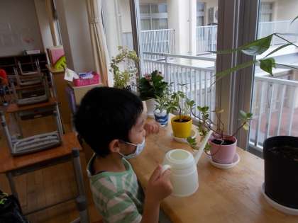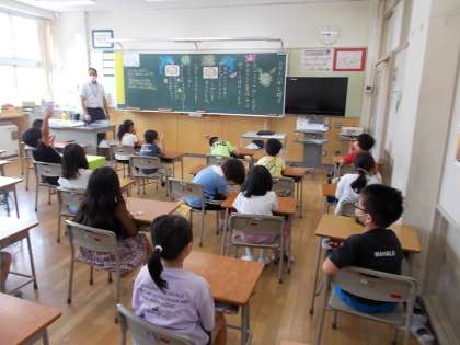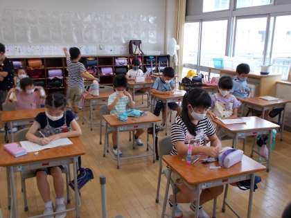 身支度や手洗い、朝の時間の過ごし方を思い出し、いつもの生活の始まりです。校長先生や担任の話に真剣に耳を傾けたり、友達との会話に花を咲かせたり、元気な子供たちの日常が戻ってきました。