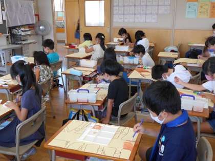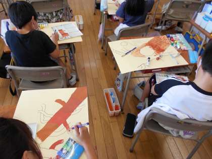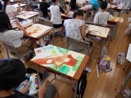 図画工作科では、「○○のなる木」をテーマに、自分の想像した「実」のなる木を描いています。