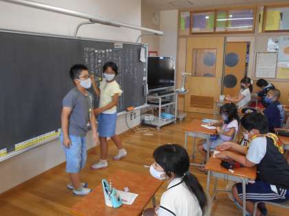 9月17日(木)に行われる代表委員会に向けて、学級で話合いを行いました。「つなごう まもろう あたためよう 藤っ子のわ」のスローガンから、学級でどんなことができるかを考えて話し合いました。子供たちの「声は出せなくても、お辞儀をしてあいさつをすることで気持ちを伝えられることができる」という意見から、感染予防に気を付け、友達と温かい関係をつくろうとする気持ちを感じることができました。