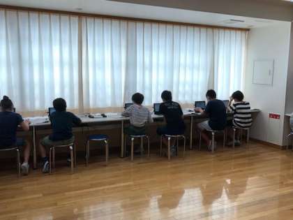 5年生では、算数科の学習を生かして、ハイブリットパソコンでプログラミング学習にチャレンジしました。