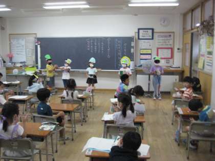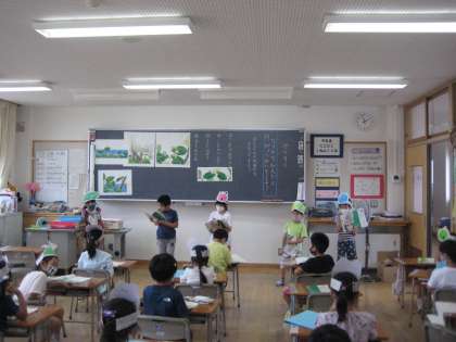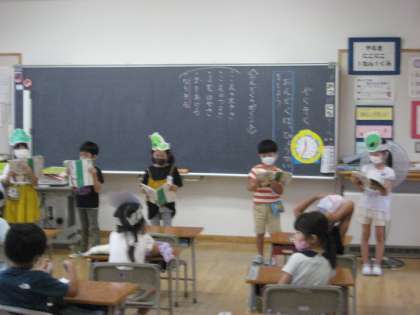 国語科「やくそく」で、音読発表会をしました。登場人物になりきって、音読しました。聞いている子供たちも楽しく聞いていました。