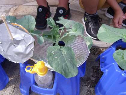 そこで、家庭での調べ学習やクラスでの話合いを通して、鉢にネットをかけるなど、自分の考えた対策を試していました。今後、野菜がどのように育っていくか楽しみです。