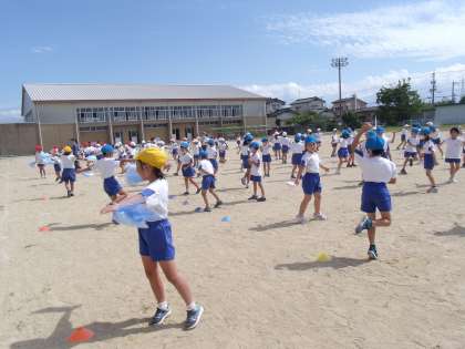 密を避けるために間隔をあけて並びました。そして、1学期から各クラスで練習してきたダンスを思いっきり踊りました。「外で踊って気持ちよかった!」「みんなの振りがそろっていたよ!楽しかった!」と笑顔を見せていました。
