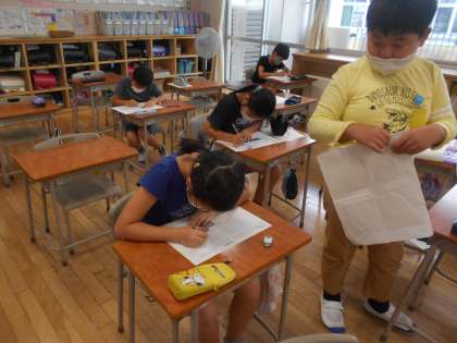割り算の筆算や、漢字の書き取り等、これまでに学習した内容をおさらいするプリント学習をしました。間違えたところをしっかりと直して、間違えを減らそうと熱心に取り組んでいます。