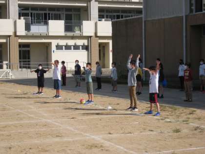 スポーツウィークが始まりました。今日は4年生運動会が行われ、6年4組の子供たちがエールを送りました。4年生に応援の気持ちを届けるために、子供たちは大きな声を出してがんばりました。