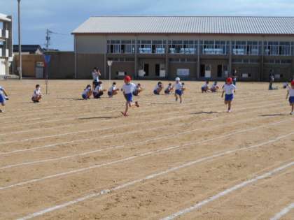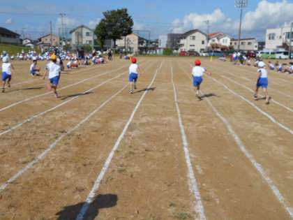 1年生になって初めて、1組から6組がそろい、かけっこをしました。6年生に応援をしてもらい、元気いっぱい張り切って走っていました。