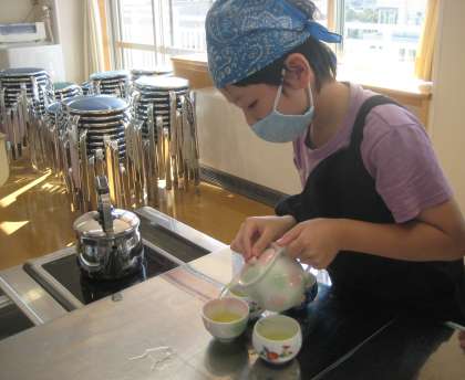 家庭科の学習で、お茶を淹れました。お湯の量を計量カップで量ったり、茶葉の量を計量スプーンで量ったりするなど、一つ一つの活動を丁寧に取り組む姿がありました。