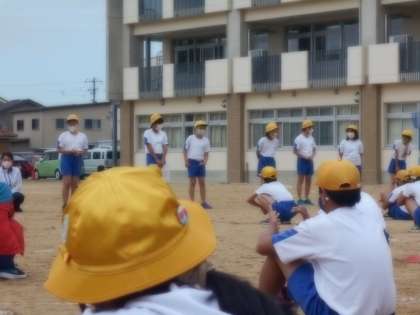 この「GO!GO!オリンピック」では、来年度の運動会を見据えて、子供たち全員が役割を分担して行いました。競技の進行は集会委員会、感染症対策及び熱中症対策についての注意については健康委員会というように、子供たちそれぞれが自分の仕事に責任をもって取り組みました。緊張しながらも、みんなの前で最後までしっかりとせりふを言い切り、ほっとした様子の子供たちに成長を感じました。