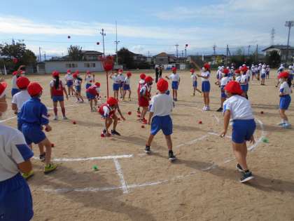 今日は、「サンサンスポーツ集会」と題して、3年生の学年合同体育会を行いました。種目は、玉入れとドッジボールです。張り切って運動した3年生です。