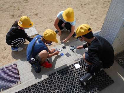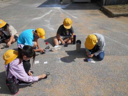 今日は、虫眼鏡を使って、日光を集める実験をしました。うまく焦点を合わせることができた子供からは、「煙が出た」「穴が開いた」などという声が聞かれました。