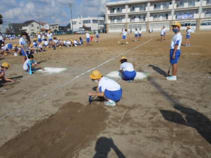 この大会に向けて、毎朝自分たちで掘り起こしてきた砂場。子供たちの気合いも十分でした。それぞれの種目では、6年生全員で、整列係、スターター、計測係、記録係等の仕事を分担し、自分たちで運営しました。