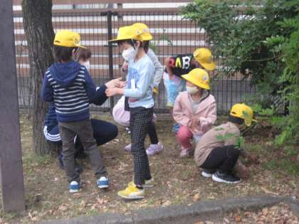 生活科「あそびにいこうよ」の学習で、藤の木園町公園へ行きました。「だるまさんがころんだ」をしたり、遊具で遊んだりしました。また、どんぐりを拾い、みんなで仲良く活動しました。