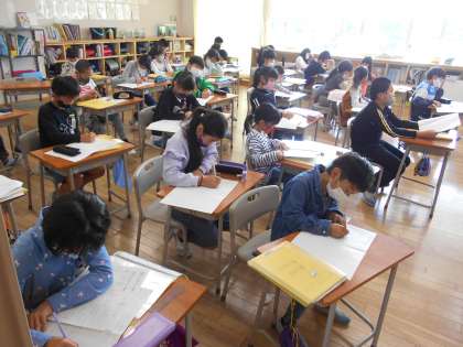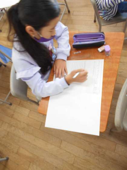 3週間にわたって取り組んできた環境を守る実践を振り返り、クラスメイトや学年の友達に伝えるためにまとめています。今日は割付です。どこにどのような内容を配置するかを考えました。今後は詳しい内容をまとめていく予定です。