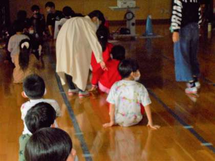 学校の代表として、初めての大きな仕事に臨みました。年長さんと視線を合わせて、優しく声をかけたり、そっと横で寄り添ったりする様子がたくさん見られました。それぞれが自分の役割に責任をもち、最後まで一生懸命に取り組みました。