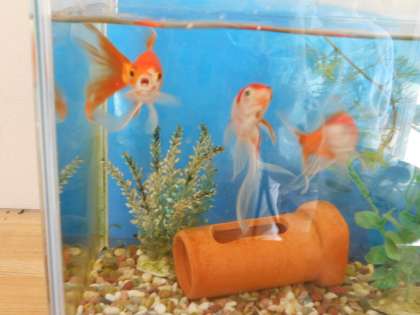 4年5組で飼っている金魚たちは今日も元気です。生き物係の子供たちが欠かさずに餌やりなどの世話をして可愛がっています。聞けば、2年生の頃から飼っているとのことでした。これからも金魚と共に、子供たちの生き物を大切にする心が育ってほしいです。