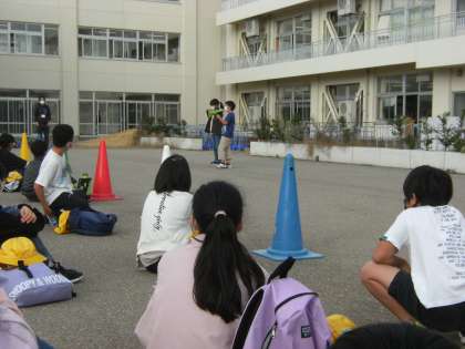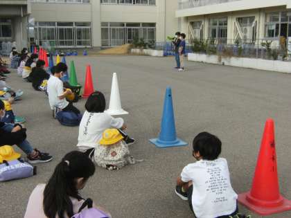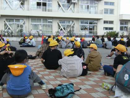 GO!GO!ハイキングの出発式です。司会係の子供たちが、活動の目当てを説明しました。