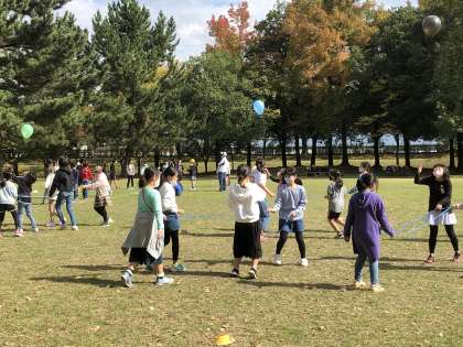学級活動では、1組は、二つのボールを使ったドッジボール、ボーリング、風船キャッチを行いました。子供たちは、限られた時間の中で、全員が楽しめるように工夫して過ごしました。