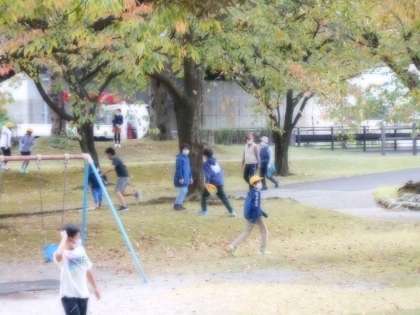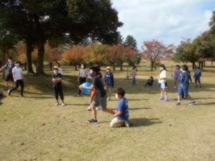 5組の学級活動は、「けいどろ」「ドッジボール」と、子供たちが発案した「ウーバーイーツごっこリレー」をしました。初めての遊びでしたが、大変盛り上がりました。