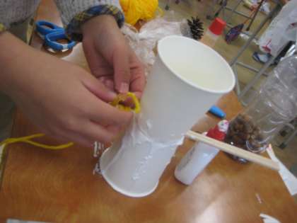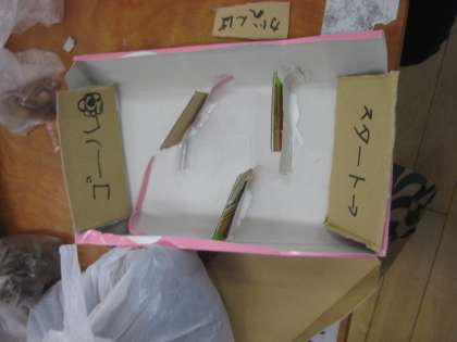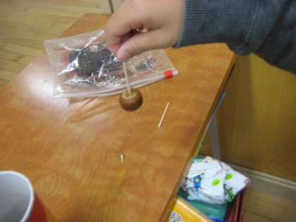 生活科「みつけたあきであそぼう」では、ドングリごまや松ぼっくりのけん玉を作っています。また、ドングリの迷路にも挑戦しており、工夫しながら制作を進めています。