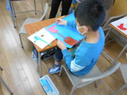 そろそろ完成です。仕上げに向かってみんな集中して取り組んでいます。