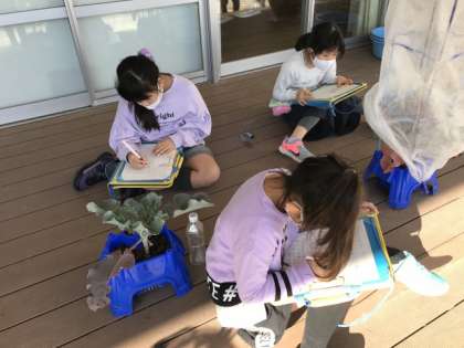 9月に苗を植えた野菜の収穫が近付きました。先週は学校での最後の観察をしました。一生懸命育てた野菜がやっと実を出してくれたことに感動したり、これまでの野菜の成長を振り返ったりしていました。