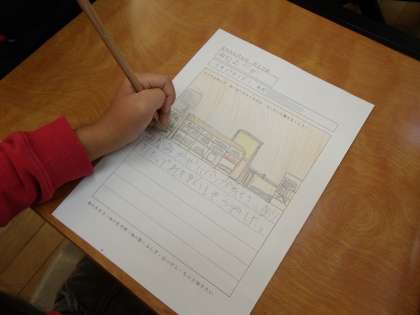 町探検から帰ってきた後、振り返りカードに、見たことや質問してきたことを絵や文章でまとめていました。友達に伝えたいことをたくさん見つけてきて、うれしそうな子供たちでした。
