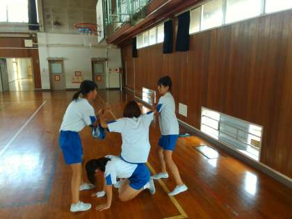 表現運動を行いました。各色団でテーマに沿った表現ができるように相談しながら動きをつくりました。