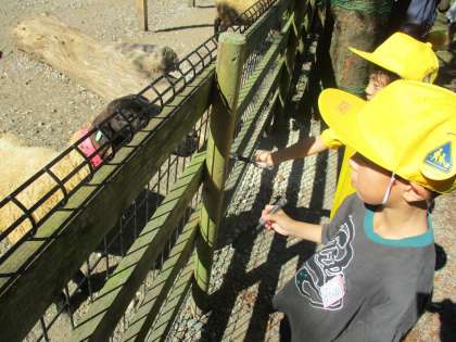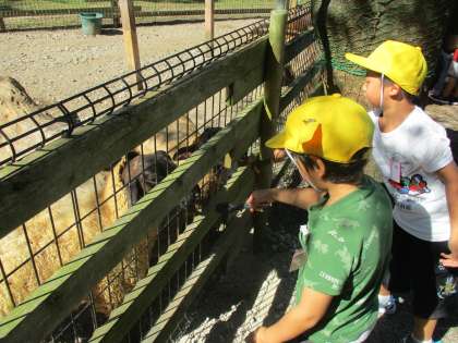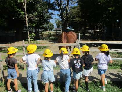 ひつじの餌やり体験をしたり、乗馬広場で馬を見たりしました。子供たちは、動物の鳴き声を間近に聞いて驚いていました。