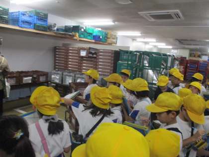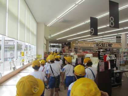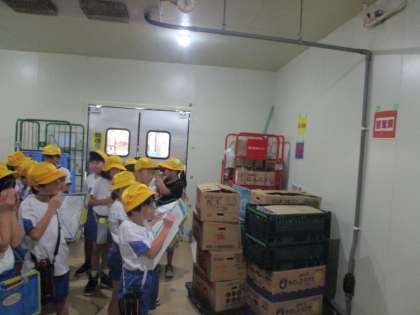 今日は、社会見学でスーパーマーケットに行きました。開店前の店内に入り、普段見ることのできない様子を見学することができました。バックヤードという場所にある、たくさんの野菜や、朝6時から食品を搬入していること等に驚く姿が見られました。たくさん質問する様子も見られ、子供たちは積極的に学習に取り組んでいました。