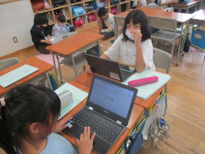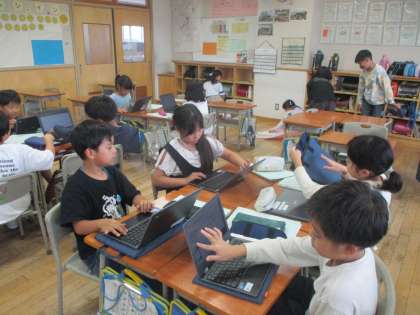 今日は、藤ノ木の宝について調べたことをまとめる活動を行いました。友達と役割分担をしながら活動を進めていました。