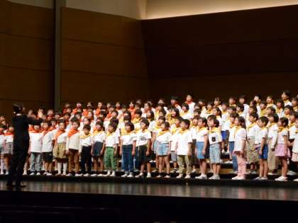 藤ノ木小学校の出番は、後半の部のトップバッターでした。緊張しながらも、練習してきたことを全て出し切ろうと全員が一生懸命歌っていました。とても素敵な歌声がホールに響きました。