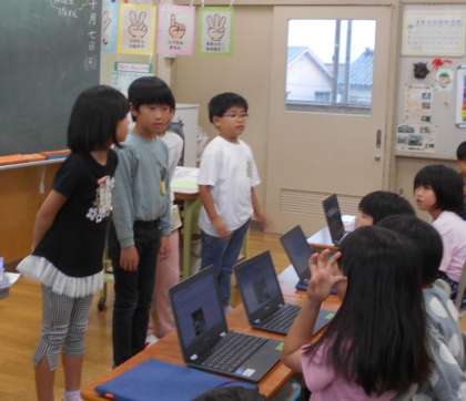 子供たちは、学校での生活をもっと楽しくするために、進んで係活動をしています。ドッジボール大会やお笑いライブを計画し、クラスのみんなにお知らせをしています。