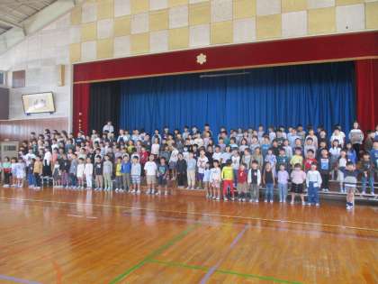 今日は、体育館で学習発表会の練習をしました。子供たちは、音の強弱や歌詞の意味に気を付けて歌っていました。本番に向けて一生懸命練習する姿が見られました。