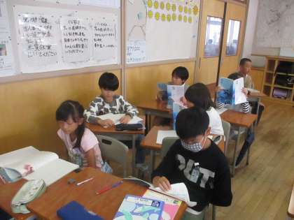 国語ではちいちゃんのかげおくりという物語を学習しています。友達の考えを聞きながら登場人物の心情について深く考えたり、気持ちを込めて音読したりしています。