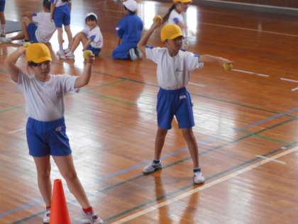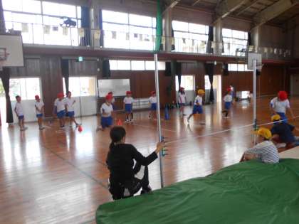 体育科の学習では、的当て、ゴム跳び、川跳び、ジグザグドリブル等のいろいろな技に挑戦しました。楽しみながら体を動かしました。