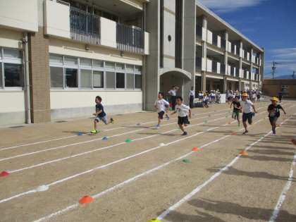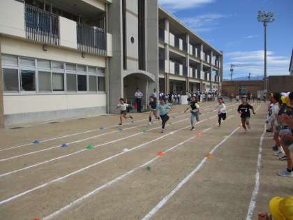 大休憩に運動委員会が企画した50m走チャンピオン大会がありました。各学年クラスから男女1名ずつが出場し、学年のチャンピオンを競いました。一生懸命走ったり、そんな友達を応援したりする姿が素敵でした。