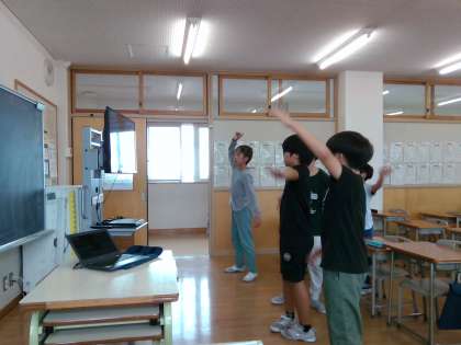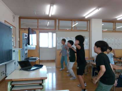 休み時間を使って、藤ノ木ソーランの練習を自主的にしています。