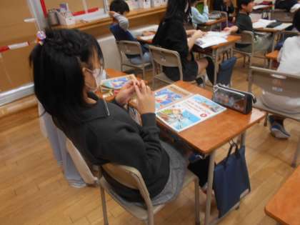 英語の道案内の仕方について先生と一緒に確認しました。まっすぐ進むときや曲がりたいときの発音の仕方を練習しました。