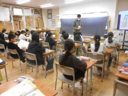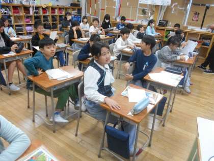 英語の道案内の仕方について先生と一緒に確認しました。まっすぐ進むときや曲がりたいときの発音の仕方を練習しました。