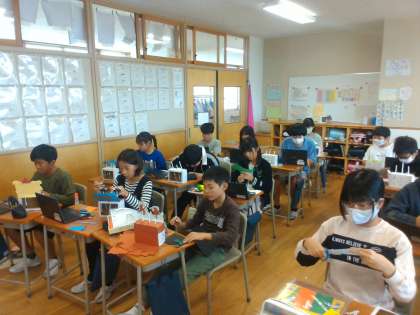 「くるくるクランク」の学習をしました。自分でテーマを決めて、表したい内容を考え作成しました。完成するのが楽しみです。