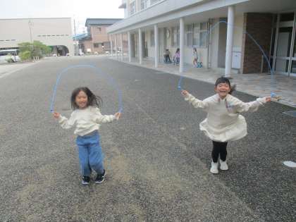 休み時間に、なわとびや一輪車で遊んでいました。たくさん跳ぶために手の回し方を工夫したり、乗り方を友達にアドバイスしたりしていました。