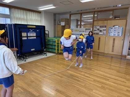 今日の体育では縄跳び運動お行いました。技セブンにある技にチャレンジしたり、大縄で八の字跳びをしたりするなど、それぞれが目標をもって取り組んでいました。友達と声をかけ合いながら一生懸命練習する姿が見られました。