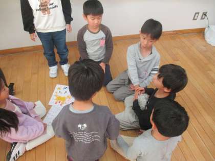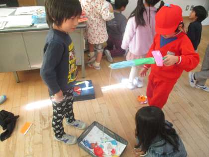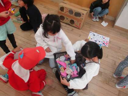 「つり」「たまいれ」「ばくだんゲーム」の様子です。年長児にやさしく声をかけて景品を渡したり、一緒に楽しんでいました。