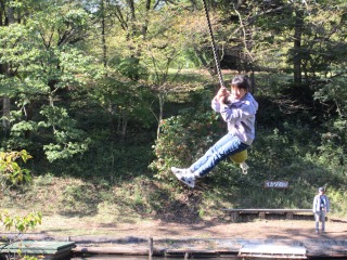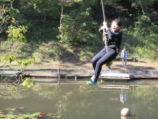 始まる前までは「落ちそうだな」「高くて怖いかな」と不安そうに話していたターザンロープですが、いざ始まると「楽しい」「もう一回したい」と笑顔で話す子供たちでした。