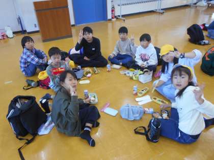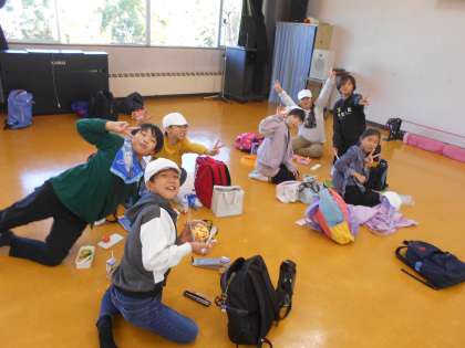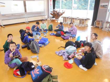 午前中一生懸命活動し、お腹が減った子供たちにとって待ちに待ったお昼ご飯です。「今日グラタンが入ってる」「果物たくさん入れてもらったよ」とお弁当を見せながら楽しそうに話す子供たちでした。