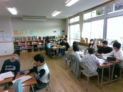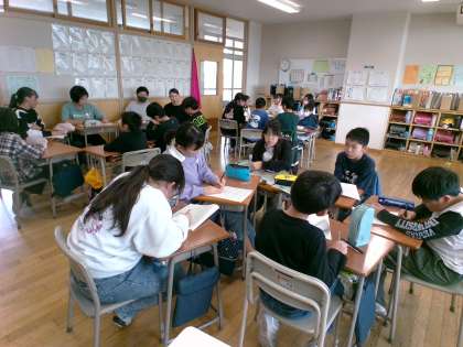 宿泊学習にむけて、班ごとにめあてや野外炊飯の役割を決めました。