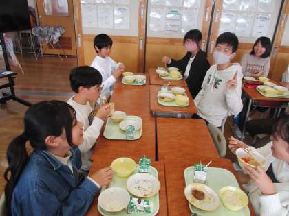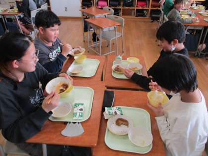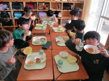 今日の給食は、子供たちが大好きなハンバーグ!子供たちは、笑顔で給食を味わいました。