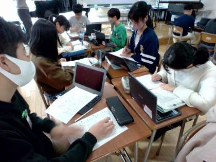 ブラームスのハンガリー舞曲第5番を鑑賞しました。4つの場面に分けて、それぞれの印象について班で話合いました。